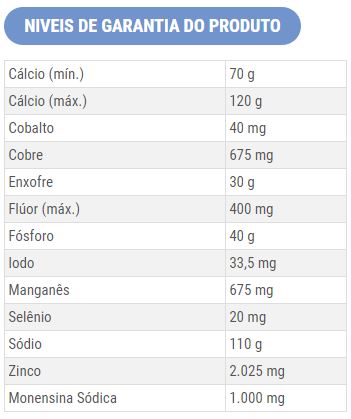 Níveis de garantia por quilograma de produto - Engorda MD: